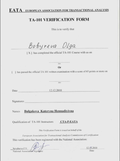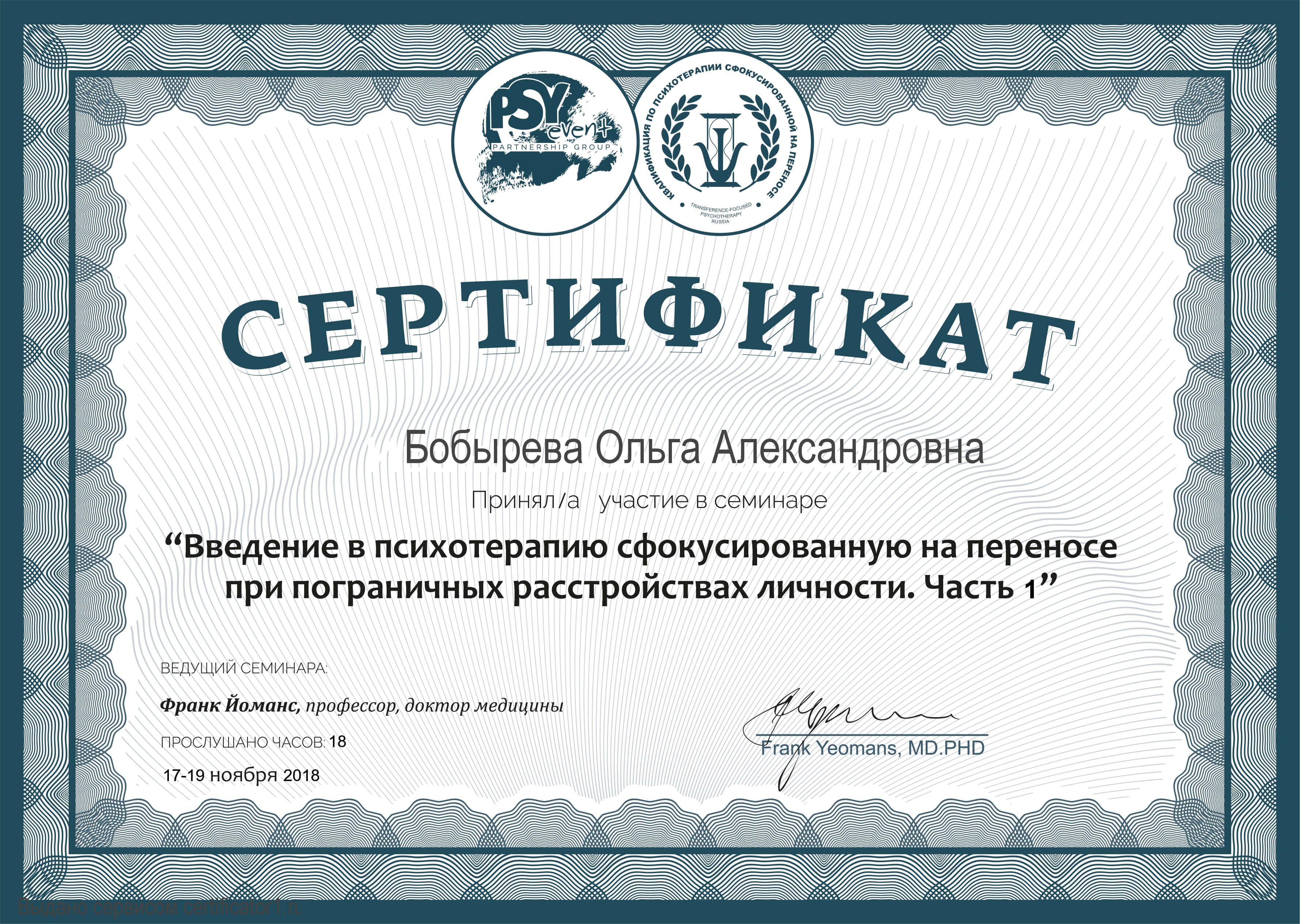 Сертифицированный бизнес-тренер ICBT Введение в терапию сфокусированную на переносе при пограничных расстройствах личности