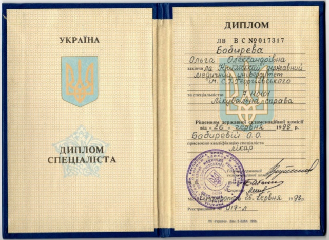 Таврический национальный университет им. В.И. Вернадского, психолог Крымский государственный медицинский университет им. С.И. Георгиевского, врач