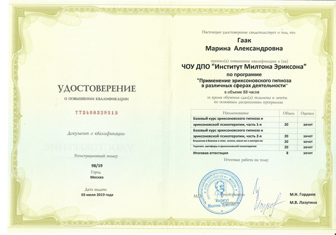 Институт Милтона Эриксона 2019 г. Применение эриксоновского гипноза в различных сферах деятельности.