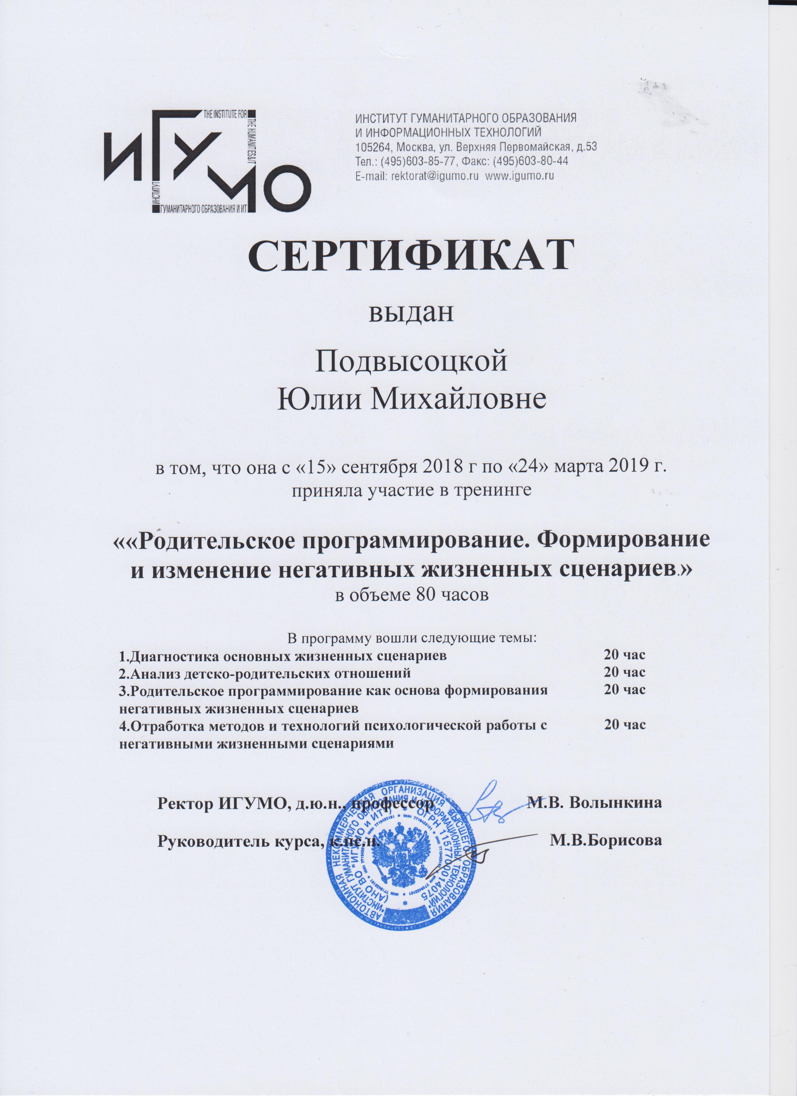 АНО ВО «ИГУМО и ИТ», г. Москва, бакалавр по направлению подготовки «Психология»;