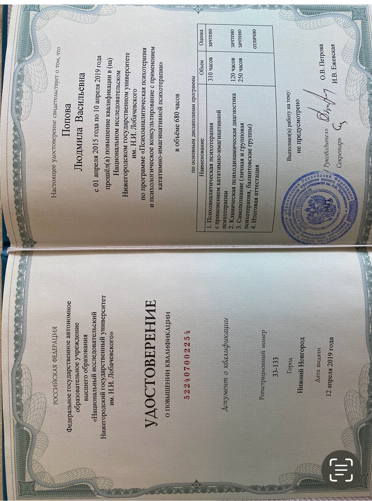Нижегородский Государственный Университет им. Н. И. Лобачевского - Психоаналитическая психотерапия и психологическое консультирование с применением кататимно -имагинативной психотерапии.