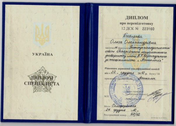 Таврический национальный университет им. В.И. Вернадского, психолог Крымский государственный медицинский университет им. С.И. Георгиевского, врач