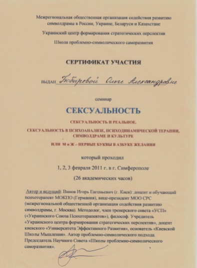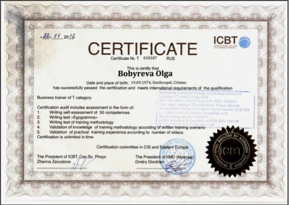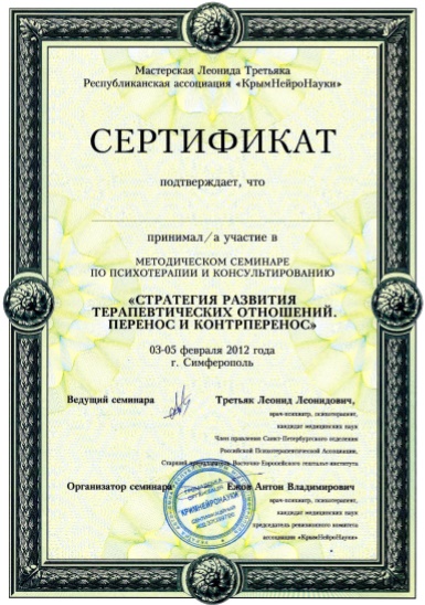 Сертифицированный бизнес-тренер ICBT Введение в терапию сфокусированную на переносе при пограничных расстройствах личности