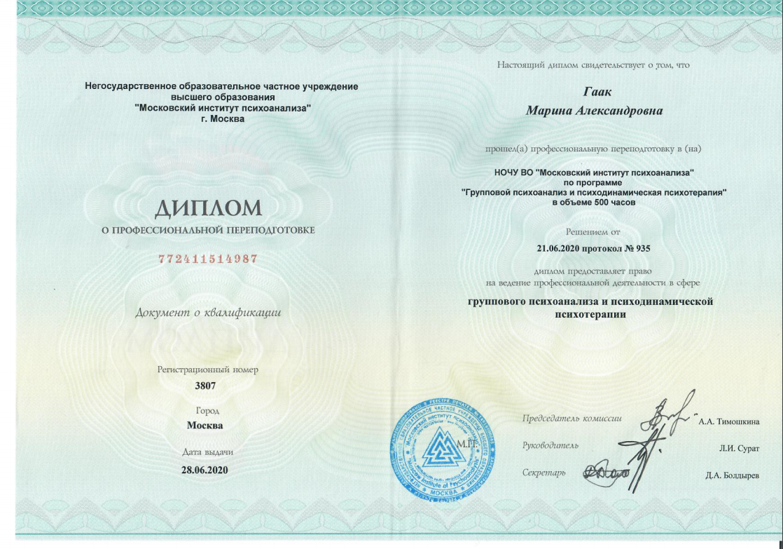 Московский Институт Психоанализа 2020 г. Групповой психоанализ и психодинамическая психотерапия