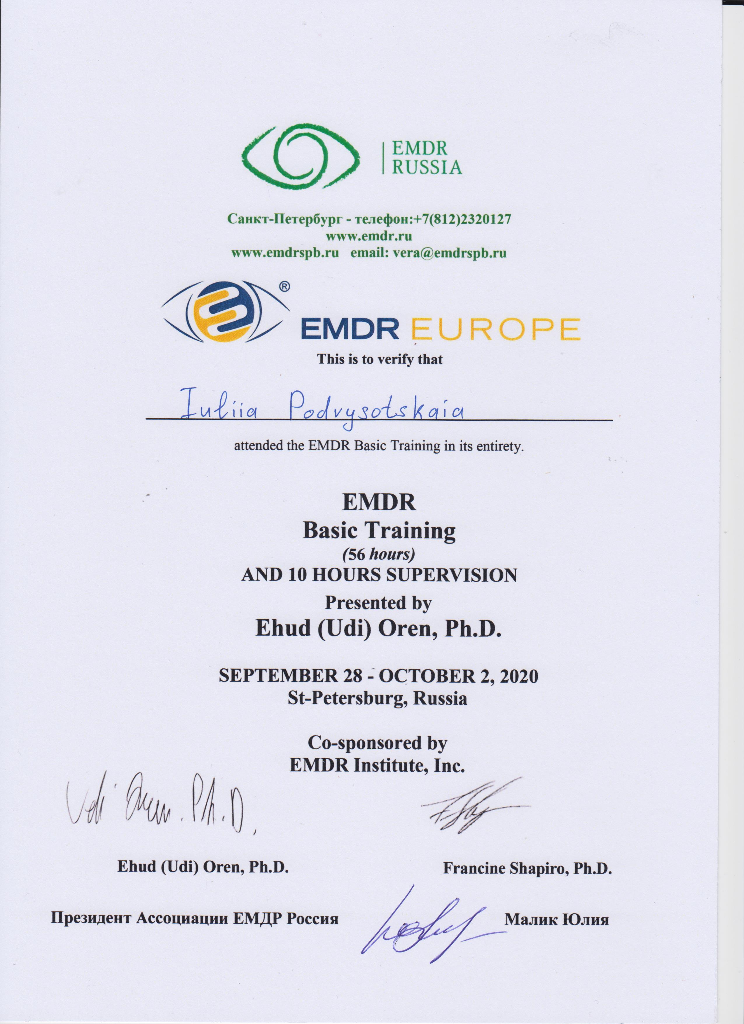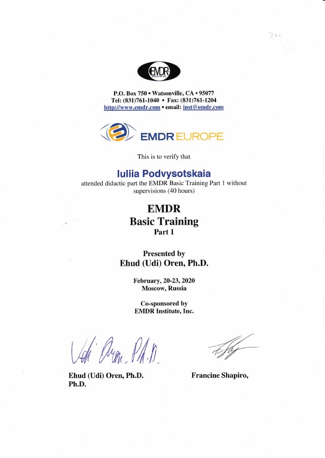 Российская и Европейская Ассоциация EMDR, EMDR Institute, многоуровневая программа обучения;