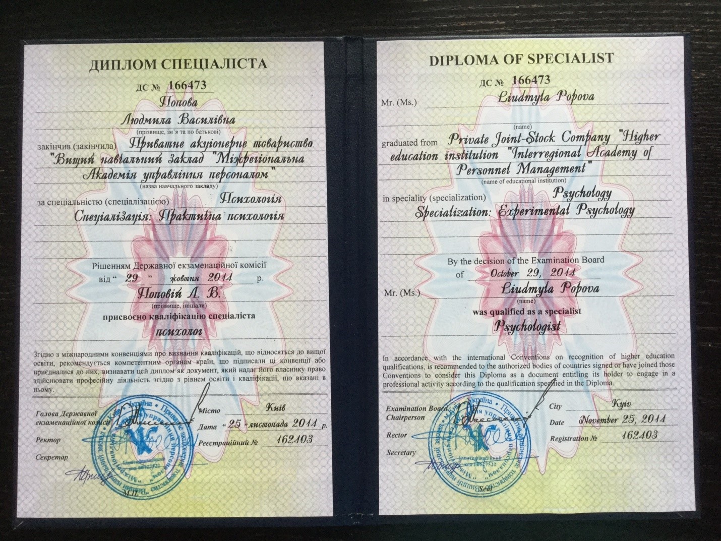 Киевская межрегиональная академия управления персоналом - Практическая психология.
