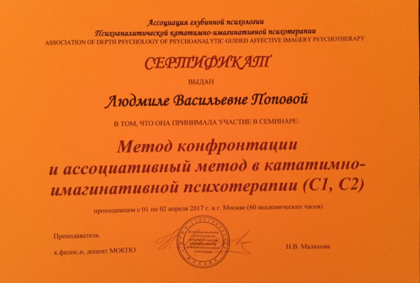 Личный анализ у сертифицированного психоаналитика ECPP, COIRAG, Egatin, IAGP. (с 2014г) - 900 часов.