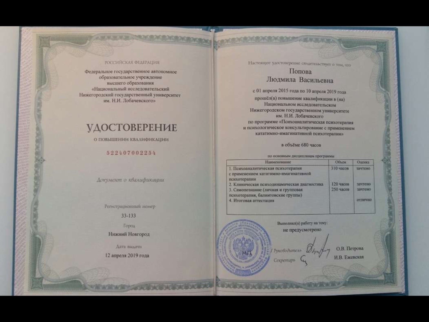 Нижегородский Государственный Университет им. Н. И. Лобачевского - Психоаналитическая психотерапия и психологическое консультирование с применением кататимно -имагинативной психотерапии.